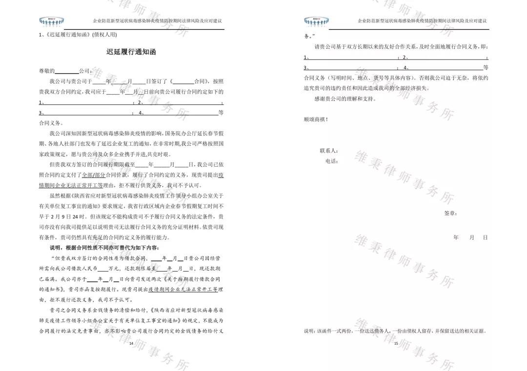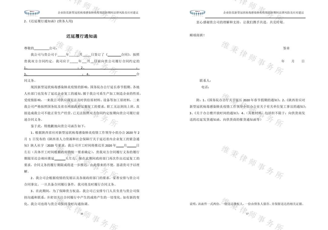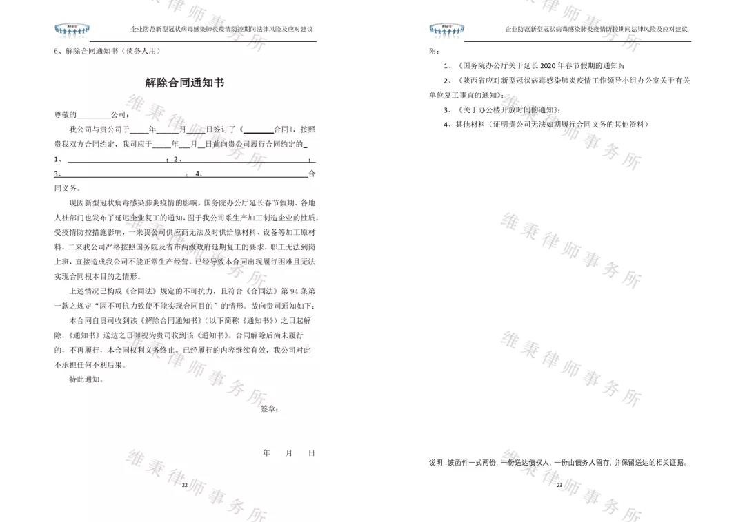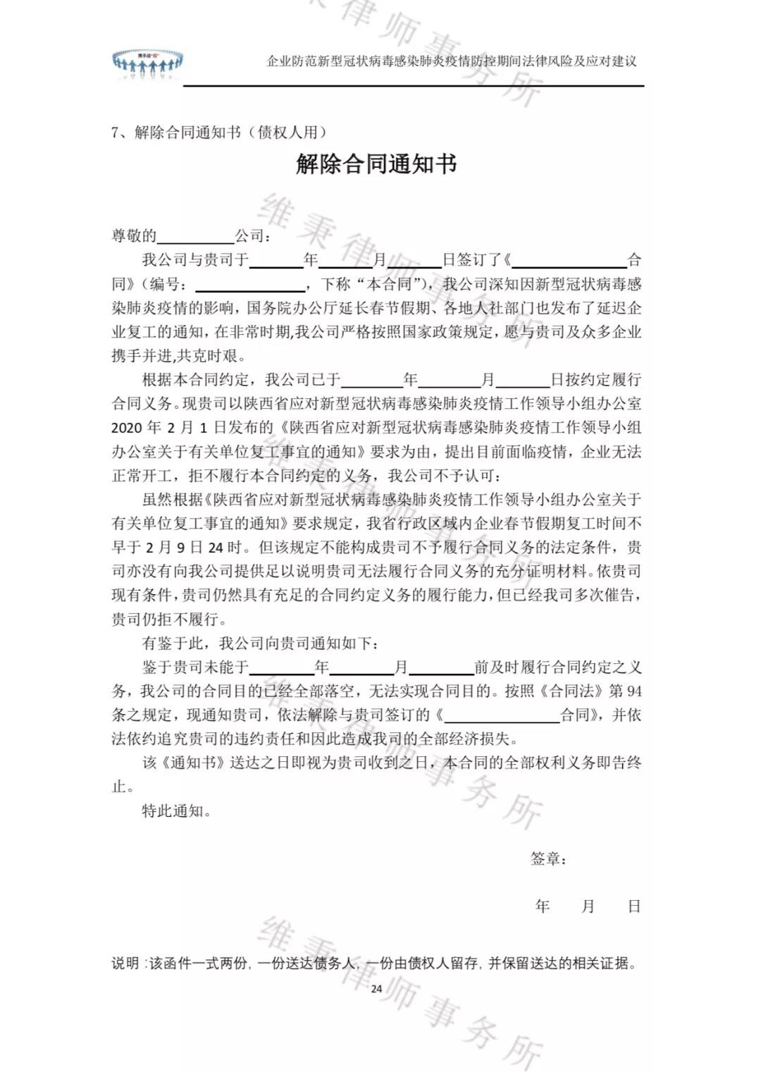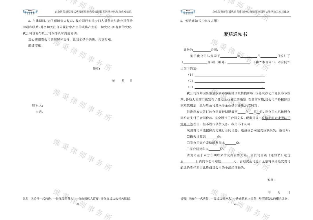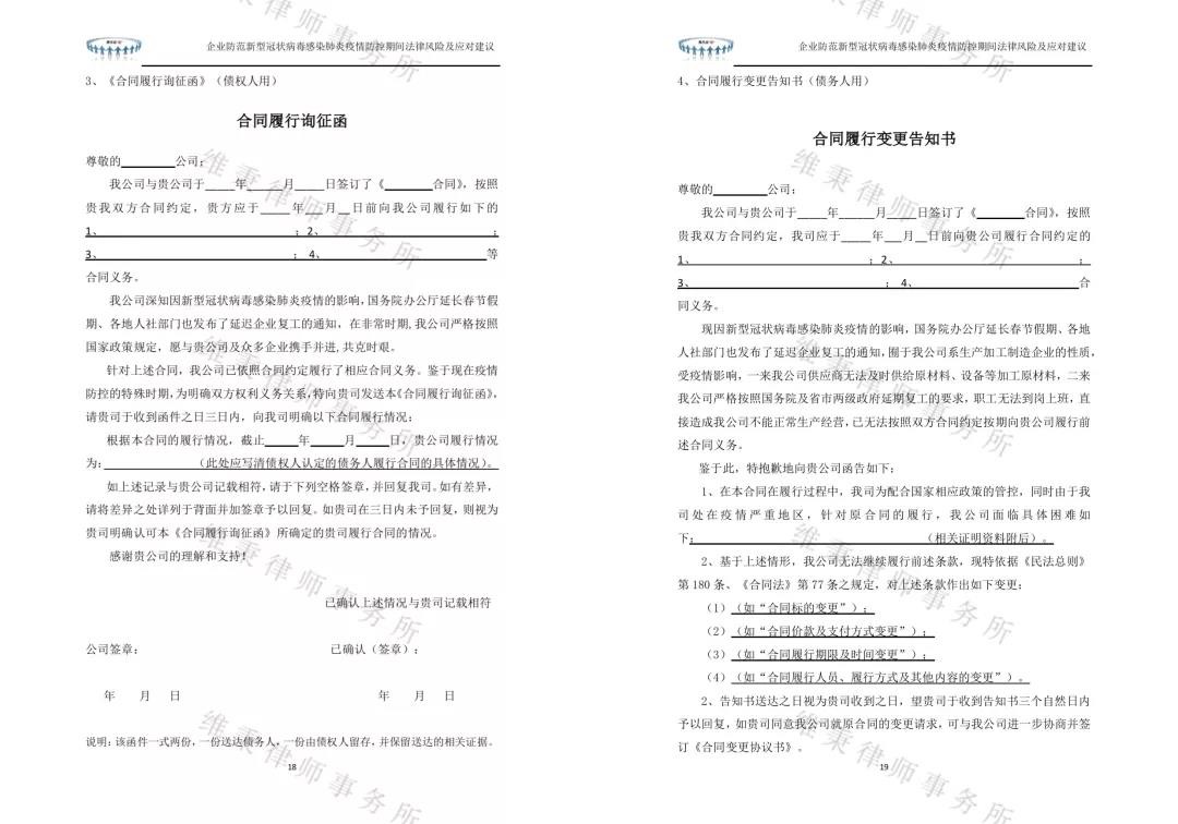 囿于微信公众号版面所限,如还有企业需要上述函件模板,请及时与我们联系,非常时期,我们愿随时为您提供法律帮助。