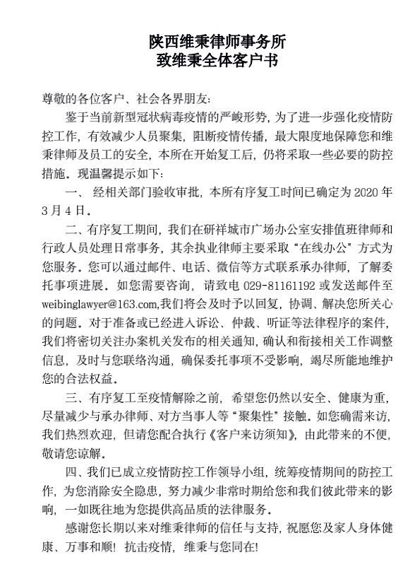 感谢您长期以来对维秉律师的信任与支持,祝愿您及家人身体健康、万事和顺!让我们共同期待疫情消退,风和春暖的日子,早日来临!